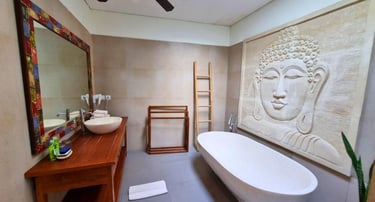 The pool, as the same size like one bedroom villa, It's a sparkling gem nestled within the villa's grounds, perfectly proportioned to provide a refreshing escape. Its crystal-clear waters beckon, inviting you to dip in and unwind after a day of exploration or simply to enjoy a leisurely swim.