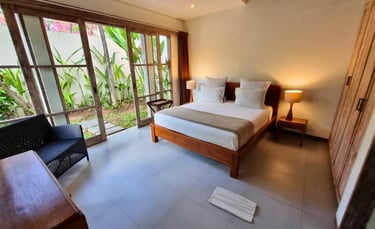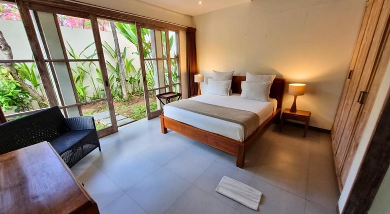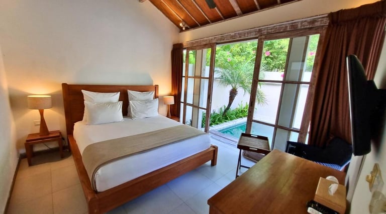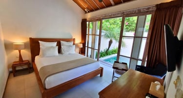 The standard bedroom exudes a sense of understated luxury and comfort. It typically features a king-sized bed adorned with soft linens and plump pillows, ensuring a restful night's sleep. The decor is elegant yet inviting, with tasteful furnishings and subtle accents that complement the villa's overall aesthetic.