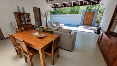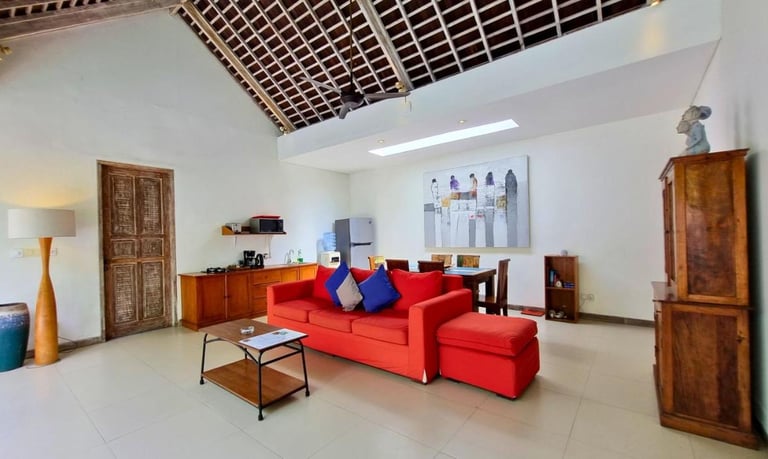In a two-bedroom villa, the living room serves as the heart of the retreat, a spacious yet intimate area designed for comfort, relaxation, and shared experiences.